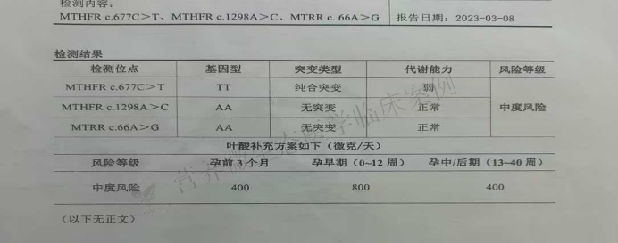 小硕果妈妈孕期没规范补充叶酸,通过检查发现自己叶酸代谢能力基因检测是中风险;