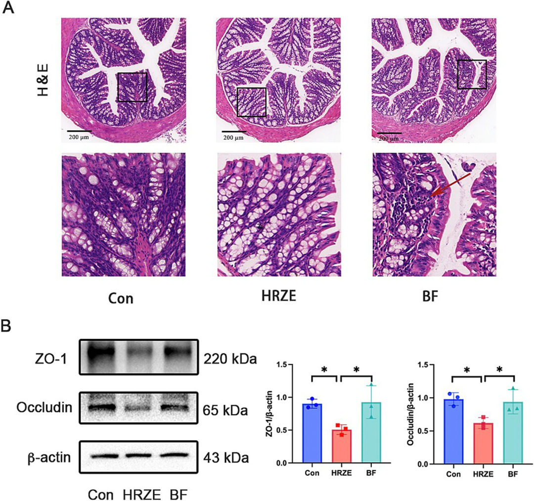 2、BF839减轻HRZE对小鼠肠屏障的负面影响
