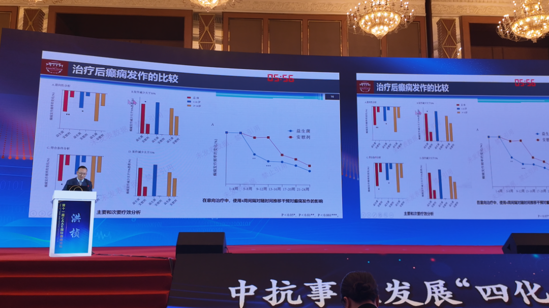 洪桢团队开展 “脆弱拟杆菌 BF839 与鼠李糖乳杆菌 TT-628 复合制剂” 多中心随机对照研究,纳入患者均维持稳定抗癫痫药物使用,实验组加用微生态制剂,对照组用安慰剂,分 3 个月双盲期与后续开放标签期。